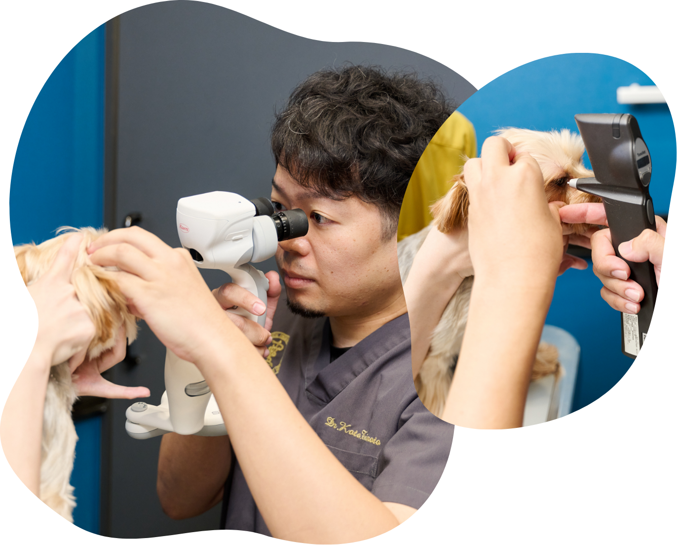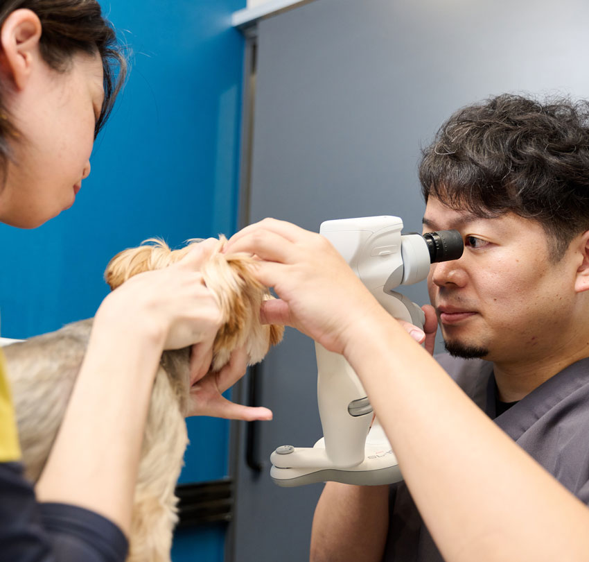診察では、専門の眼科機器を用いた検査を行い、飼い主さまにはわかりやすく丁寧な説明を心がけております。