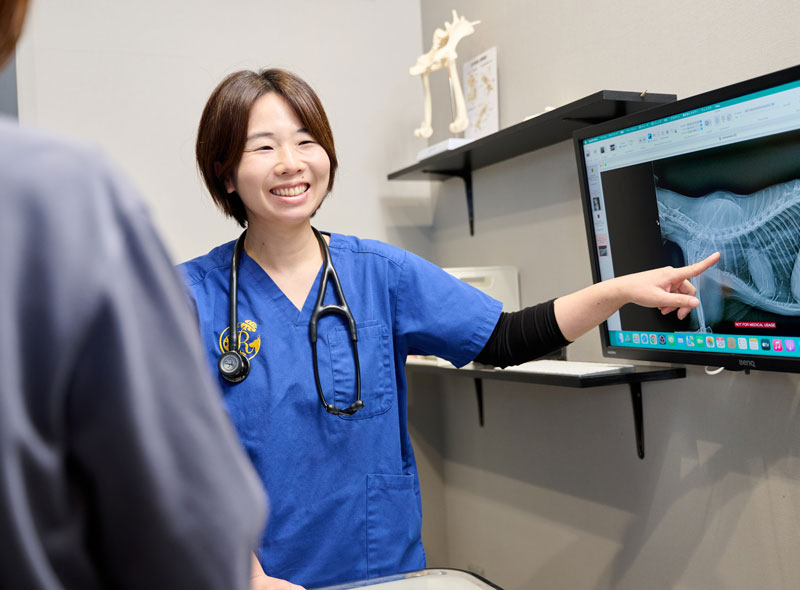 飼い主さまにとって大切な動物を安心してお任せいただくために、専門用語や略語などはできるだけ使わずに、わかりやすい説明とインフォームドコンセントに徹底的にこだわった診療を行っております。