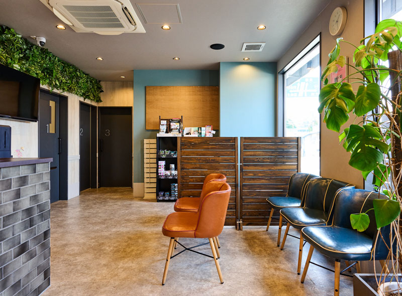 待合室には一人がけのチェアーや目に優しい観葉植物などを多数設置していますので、リラックスして診療までの時間をお待ちいただけます。